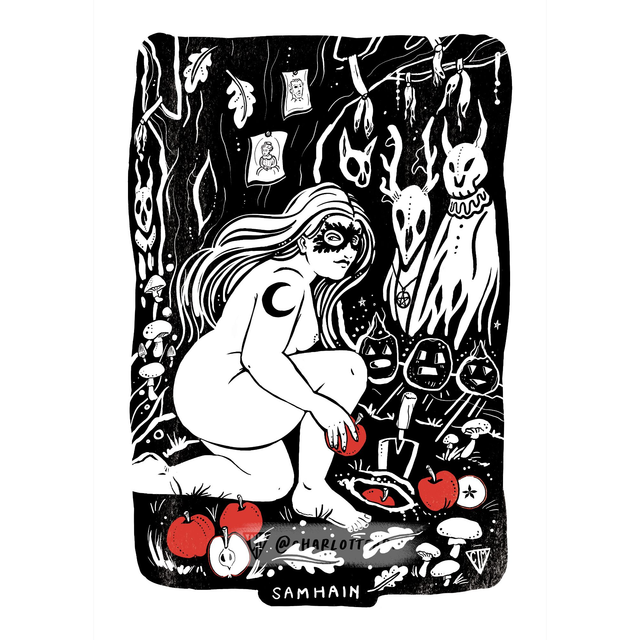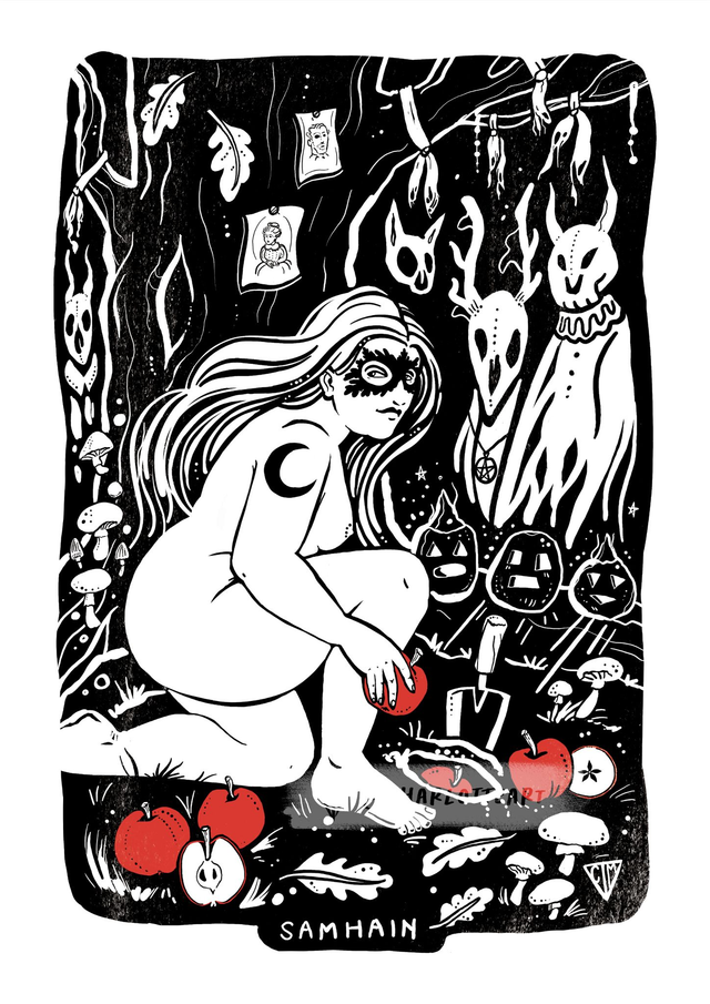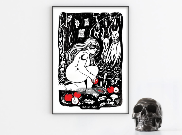 Stock Clearance - A4 Samhain Art Print - Black & White variant.